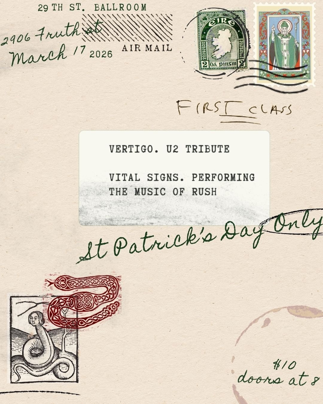 St Patrick's Day: Vertigo (U2 Tribute) + Vital Signs (Rush Tribute)